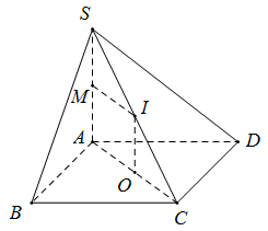Gọi $O$ là tâm hình chữ nhật $ABCD,M$ và $I$ lần lượt là trung điểm $SA,SC \Rightarrow AOIM$ là hình chữ nhật.