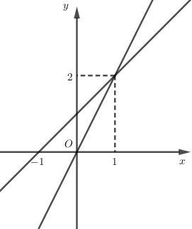 - Vẽ đồ thị hàm số \(y = 2x\) và \(y = x + 1\) trên cùng một hệ trục tọa độ.