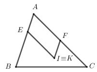 \( \Rightarrow \overrightarrow {AK} = \overrightarrow {AE} + \overrightarrow {AF} = \overrightarrow {AI} \Rightarrow K \equiv I \Rightarrow \overrightarrow {IA} + 2\overrightarrow {IB} + 3\overrightarrow {IC} = \overrightarrow 0 \)