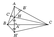 Ta có $\left\{ \begin{array}{l}BB' \bot AC\\CC' \bot AB\end{array} \right. \Rightarrow \widehat {AC'H} = \widehat {AB'H} = {90^0}$