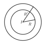 Hai đường tròn đồng tâm \(I\), có \(2\) phép vị tự tâm \(I\) tỉ số \( \pm \dfrac{{R'}}{R}\) biến đường tròn \(\left( {I;R} \right)\) thành \(\left( {I;R'} \right)\).