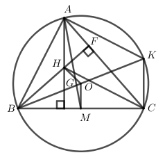 Gọi $M$ là trung điểm của $BC$ , kẻ đường kính $BK$.