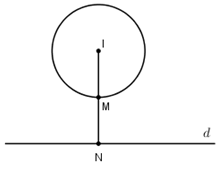$MN $ min \( \Leftrightarrow \) $IN$ đạt min \( \Leftrightarrow \) $N$ là chân hình chiếu vuông góc của $I$ xuống đường thẳng $d.$