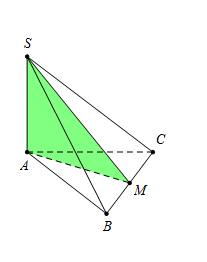Và \(\Delta \,SAM\) vuông tại $A$ nên \({S_{\Delta SAM}} = \dfrac{1}{2}SA.AM \) \(= \dfrac{1}{2}.\dfrac{{a\sqrt 3 }}{2}.a\sqrt 3 = \dfrac{{3{a^2}}}{4}.\)
