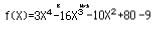 Nhập vào máy tính hàm: \(f\left( x \right) = 3{x^4} - 16{x^3} - 10{x^2} + 80x - 9\)