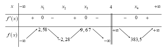 \(f'\left( x \right) = 0\,\,\,\,\, \Rightarrow \,\,\,\,\,3{x^4} - 16{x^3} - 10{x^2} + 80x - 9 = 0\)