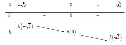- Dùng phương pháp hàm số, xét hàm \(y = h\left( x \right)\) trên đoạn \(\left[ { - \sqrt 3 ;\sqrt 3 } \right]\)