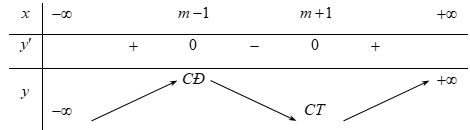 Xét \(y' = 3{\left( {x - m} \right)^2} - 3\); \(y' = 0\) \( \Leftrightarrow \left[ \begin{array}{l}x = m - 1\\x = m + 1\end{array} \right.\).