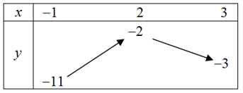 Bảng biến thiên của hàm số \(y = - {x^2} + 4x - 6\) trên đoạn \(\left[ { - 1;3} \right]\):