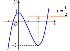 Quan sát đồ thị hàm số ta thấy đường thẳng \(y = \dfrac{1}{2}\) cắt đồ thị hàm số \(y = f\left( x \right)\) tại đúng \(3\) điểm phân biệt.