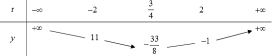 Xét hàm số \(y = f\left( t \right) = 2{t^2} - 3t - 3\) có bảng biến thiên
