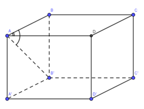 $ \Rightarrow BB' \bot (ABCD) \Rightarrow \left( {\widehat {AB',(ABCD)}} \right) = \left( {\widehat {AB';AB}} \right) = \widehat {BAB'} = {30^0}$