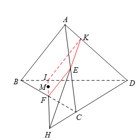 Hình ở TH1: Trong \(\left( {BCD} \right)\): Kẻ \(FM\) cắt \(CD\) tại \(H\). Thiết diện là tam giác \(EFH\).
