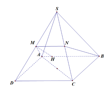 Suy ra ${S_{ABNM}} = \dfrac{{MH.\left( {MN + AB} \right)}}{2} = \dfrac{{3\sqrt {15} {a^2}}}{{16}}$.