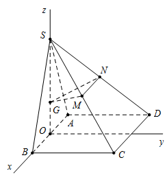 Khi đó $G\left( {0;0;\dfrac{{\sqrt 3 }}{6}} \right),\,\,M\left( {\dfrac{1}{4};\dfrac{1}{2};\dfrac{{\sqrt 3 }}{4}} \right),\,\,N\left( { - \,\dfrac{1}{4};\dfrac{1}{2};\dfrac{{\sqrt 3 }}{4}} \right)$