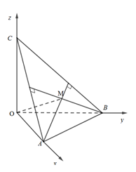 - Viết phương trình mặt phẳng $\left( {ABC} \right)$, là mặt phẳng đi qua M và nhận $\overrightarrow {OM} $ là 1 VTPT.
