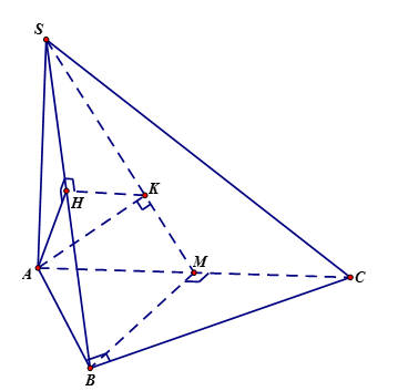 Kẻ \(AH \bot SB\) và \(AK \bot SM\).
