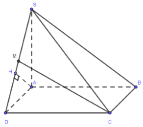 Kẻ $AH \bot SD,\,\,H \in SD\,\,\left( 1 \right)$ ta có: \(\left\{ \begin{array}{l}CD \bot AD\\CD \bot SA\end{array} \right. \Rightarrow CD \bot \left( {SAD} \right) \Rightarrow SD \bot AH\,\,\left( 2 \right)\)