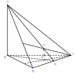 Gọi \(M\) là giao điểm của \(SH\) và \(BC\). Do \(BC \bot (SAH)\,\, \Rightarrow BC \bot AM\) hay đường thẳng