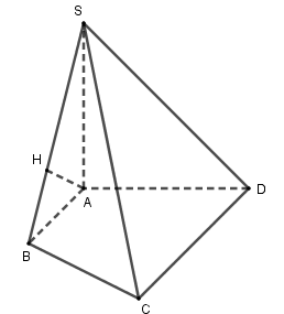 Do \(\left\{ \begin{array}{l}BC \bot AB\\BC \bot SA\end{array} \right. \Rightarrow BC \bot \left( {SAB} \right)\) \( \Rightarrow BC \bot AH\).