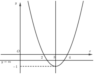 Cho hàm số \(y = {x^2} - 6x + 8\). Sử dụng đồ thị để tìm số điểm chung của đường thẳng \(y = m\left( { - 1 < m < 0} \right)\) và đồ thị hàm số trên.