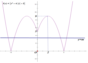 Từ đồ thị hàm số \(y = {x^2} - 4\left| x \right| - 5\) ta suy ra đồ thị hàm số $y = \left| {{x^2} - 4\left| x \right| - 5} \right|$ bằng cách lấy đối xứng toàn bộ phần đồ thị phía dưới trục Ox qua Ox sau đó bỏ đi phần đồ thị phía dưới trục Ox.