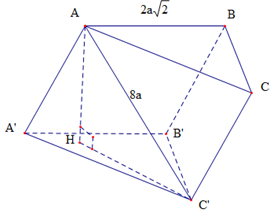 \( \Rightarrow AH = AC'.\sin 45^0=AC'.\dfrac{{\sqrt 2}}{{2}} = 4a\sqrt 2 .\)