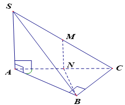 \(NM\) là đường trung bình của tam giác \(SAC\) nên \(NM//SA \Rightarrow NM \bot \left( {ABC} \right)\, \Rightarrow \,\,{\rm{MS = MC = MA = MB}}\)