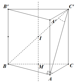 Gọi \(M\) là trung điểm \(BC\), \(I\) là trung điểm \(BC'\). Khi đó, \(IM\) là trục của đường tròn ngoại tiếp tam giác \(ABC\). Mặt khác, \(IB = IC = IB' = IC' = IA'\). Do đó, \(I\) là tâm mặt cầu ngoại tiếp lăng trụ \(ABC.A'B'C'\). Bán kính \(R = \dfrac{1}{2} \cdot BC' = \dfrac{1}{2} \cdot \dfrac{{AB}}{{\sin 60^\circ }} = \dfrac{{4a}}{2} = 2a\).