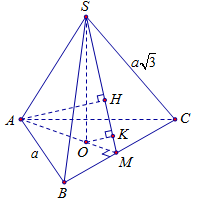 \(\dfrac{1}{{O{K^2}}} = \dfrac{1}{{O{M^2}}} + \dfrac{1}{{S{O^2}}} = \dfrac{{36}}{{3{a^2}}} + \dfrac{9}{{24{a^2}}} = \dfrac{{99}}{{8{a^2}}} \Rightarrow OK = \dfrac{{2a\sqrt 2 }}{{33}}\).