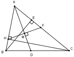 Gọi K là điểm đối xứng với H qua đường phân giác AD: x – y + 2 = 0 \( \Rightarrow \) đường thẳng HK có phương trình x + y + 2 = 0. Tọa độ giao điểm của HK với d là nghiệm của hệ: